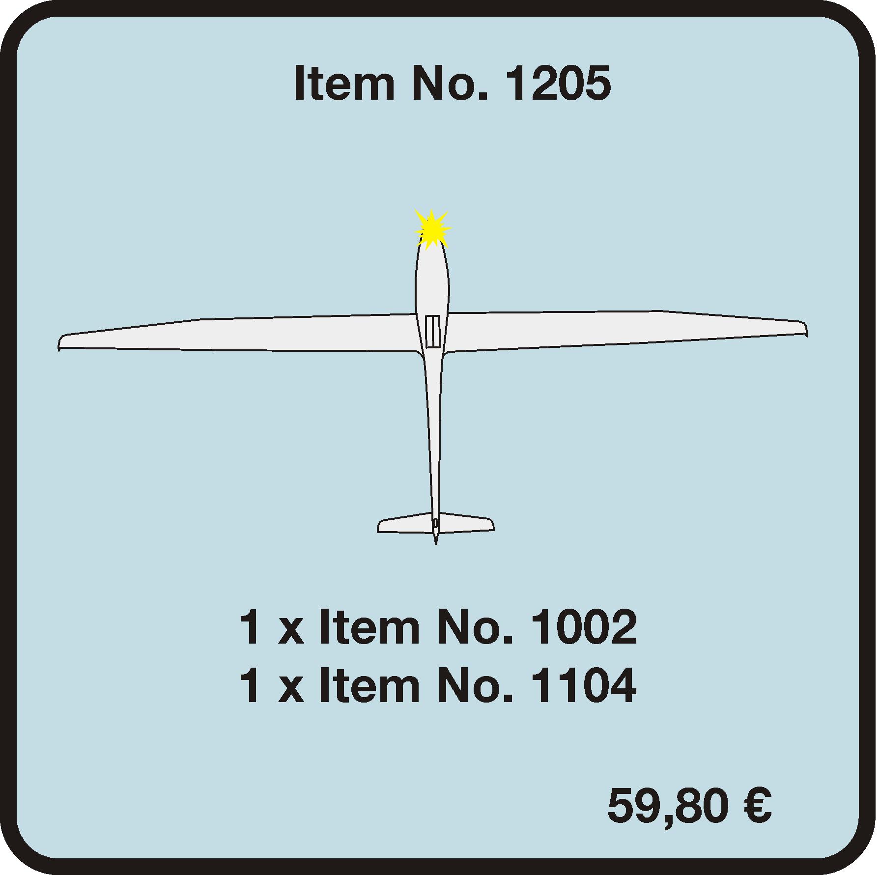 The set consists of the compact 1104 flash electronics with preconfigured modes and galvanic isolation from the receiver, combined with two ultra high-power COB LEDs (1002). The flash electronics is fully plug-and-play and provides simple lighting functions including a rapid flash mode. The high-power LEDs deliver 20 watts per LED on a copper board and reach a maximum temperature of only 32 °C in flash operation while providing very high brightness. The set is suitable for RC models in the Aero (gliders, powered aircraft, drones, helicopters), Ship (sailboats, motorboats, drones), and Car (off-road vehicles, indoor models, drones) categories.